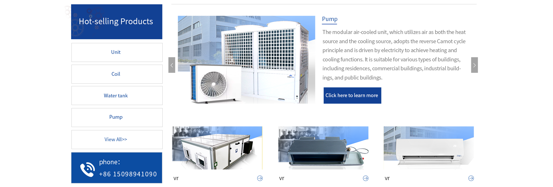 Produk utama: Unit ventilasi udara segar, Unit penanganan udara, Unit pompa panas, Unit koil kipas, tangki Air